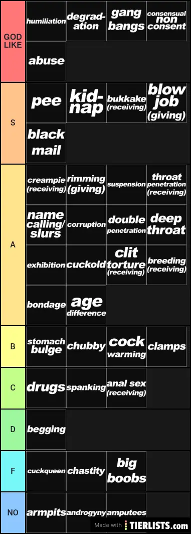 CREATE YOUR OWN Your Kink Tier List RANKING