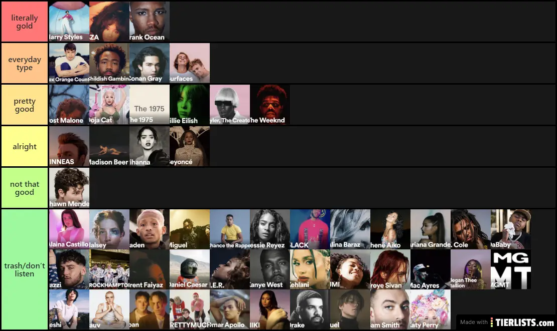 Press the labels to change the label text. Drag and drop items from the bottom and put them on your desired tier. Modify tier labels, colors or position through the action bar on the right.