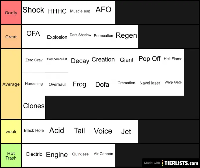 Press the labels to change the label text. Drag and drop items from the bottom and put them on your desired tier. Modify tier labels, colors or position through the action bar on the right.