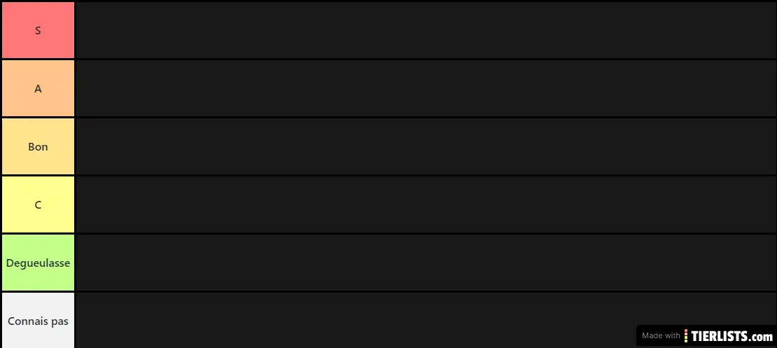 Press the labels to change the label text. Drag and drop items from the bottom and put them on your desired tier. Modify tier labels, colors or position through the action bar on the right.