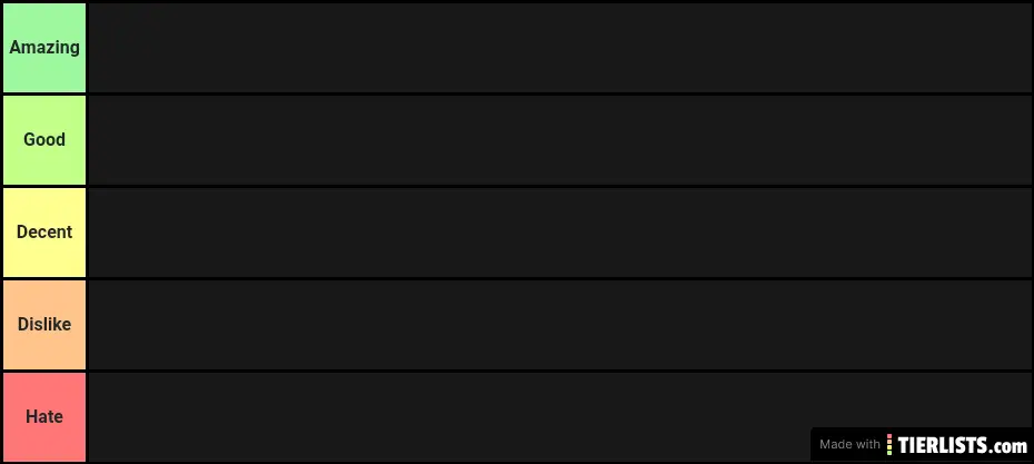 Press the labels to change the label text. Drag and drop items from the bottom and put them on your desired tier. Modify tier labels, colors or position through the action bar on the right.
