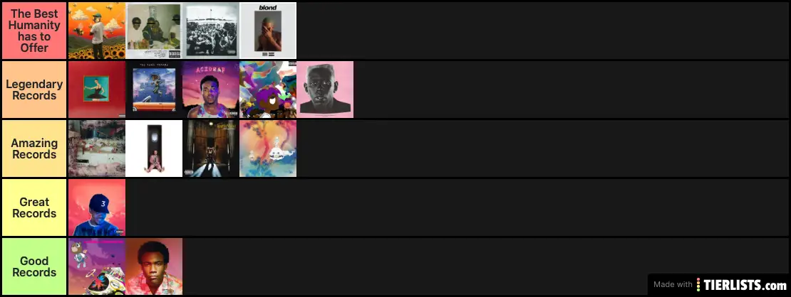 Press the labels to change the label text. Drag and drop items from the bottom and put them on your desired tier. Modify tier labels, colors or position through the action bar on the right.