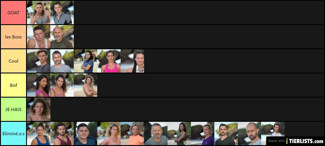 Press the labels to change the label text. Drag and drop items from the bottom and put them on your desired tier. Modify tier labels, colors or position through the action bar on the right.
