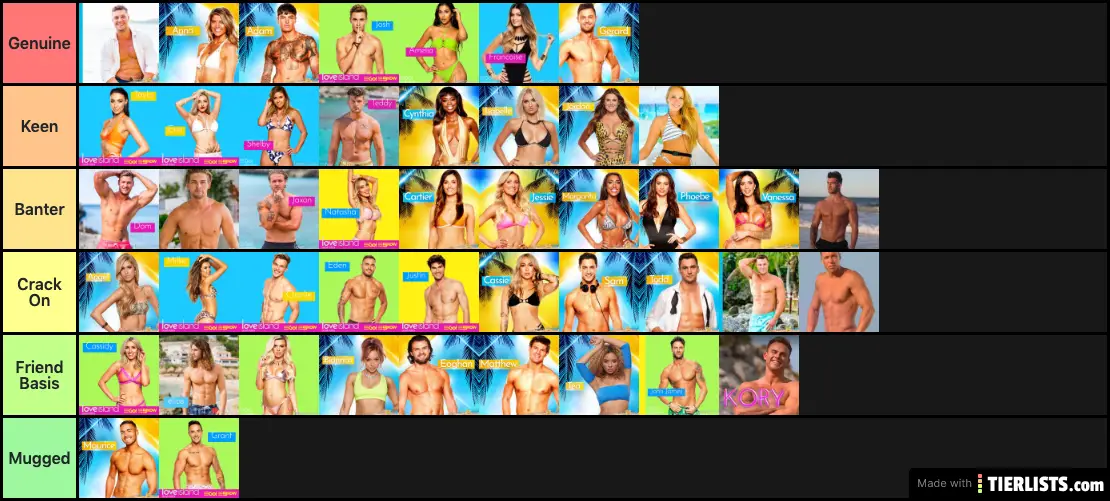 Press the labels to change the label text. Drag and drop items from the bottom and put them on your desired tier. Modify tier labels, colors or position through the action bar on the right.