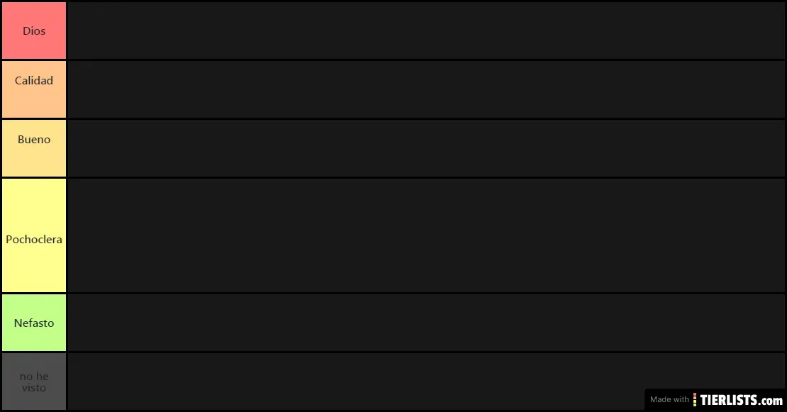 Press the labels to change the label text. Drag and drop items from the bottom and put them on your desired tier. Modify tier labels, colors or position through the action bar on the right.