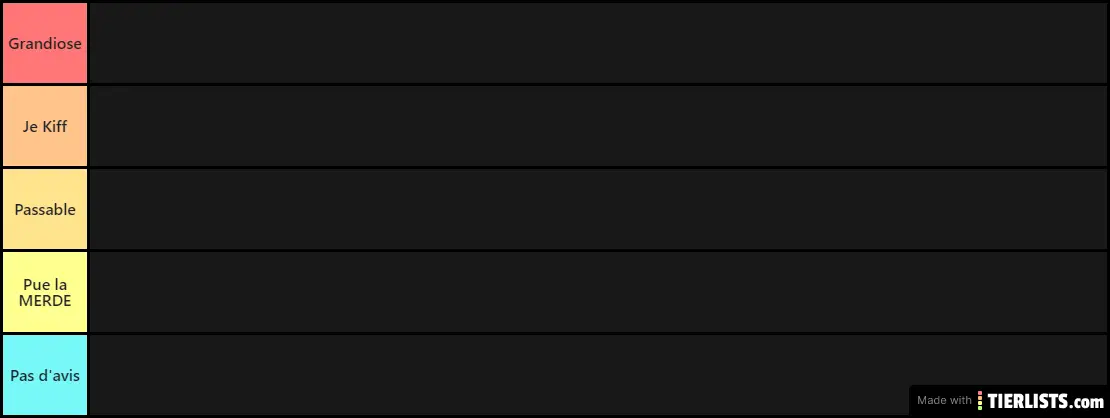 Press the labels to change the label text. Drag and drop items from the bottom and put them on your desired tier. Modify tier labels, colors or position through the action bar on the right.