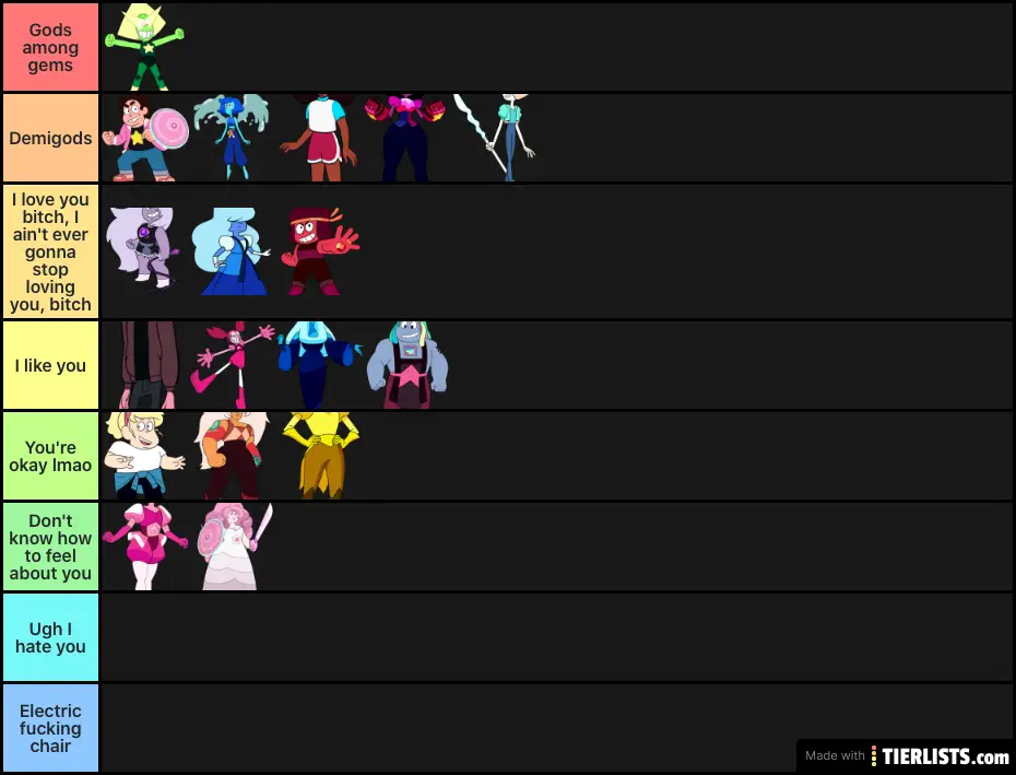 RECENT STEVEN UNIVERSE CHARACTERS TIER LISTS