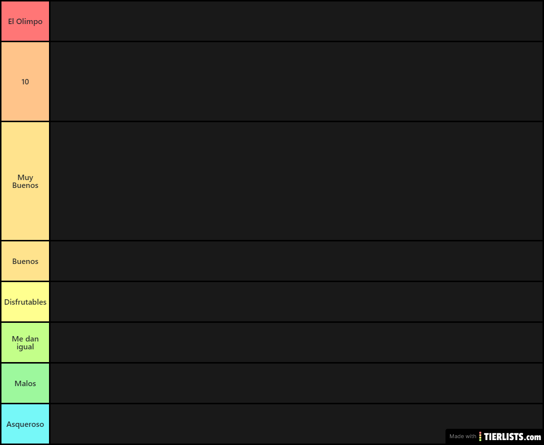 Press the labels to change the label text. Drag and drop items from the bottom and put them on your desired tier. Modify tier labels, colors or position through the action bar on the right.