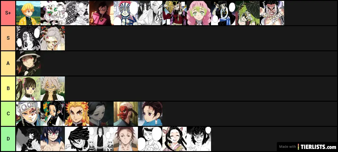 Kimetsu No yaiba list thingy